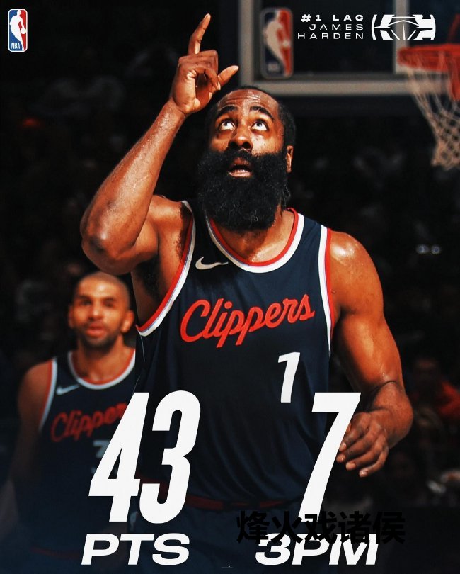 哈登首节爆砍23分,最终三节打卡,22投13中,华体会体育app三分11中7,罚球11中7,华体会体育轰下43分4篮板7助攻3抢断,43分为哈登快船生计得分新高。